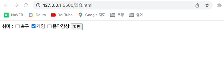 <input type="checkbox" name="hobby" value="game" checked>게임