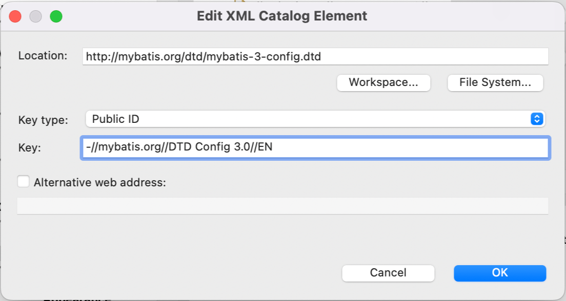 바로 finish 하지 말고 next 하여 Create file using a DTA or XML Schema file → Select XML Catalog entry 선택하여 위에서 만든 카탈로그 선택 후 finish