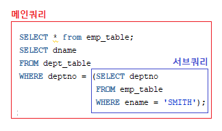 하나의 SQL문장 안에 포함된 또 하나의 SQL 문장