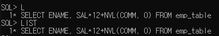 - LIST(L): 버퍼에 저장된 모든 SQL문 또는 검색한 라인의 SQL문 나타냄