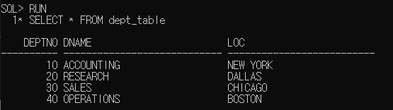 - RUN(R) : 버퍼에 저장된 SQL문 보여주고 실행 = LIST(L) + / → 많이 사용