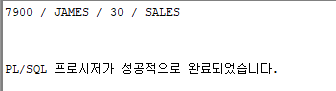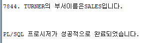 DBMS_OUTPUT.PUT_LINE(v_empno||'. '||v_ename||'의 부서이름은'||v_dname||'입니다.');