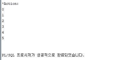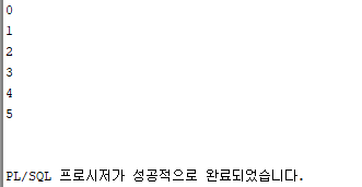 FOR i IN 0..5 LOOP ---> 여기서 출력할 변수 i는 지역변수로 DECLARE에서 지정하지 않음