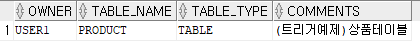 COMMENT ON TABLE product IS '(트리거예제)상품테이블';