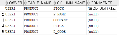 COMMENT ON COLUMN product.stock IS '트리거예제- 재고';