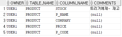COMMENT ON COLUMN product.stock IS '(트리거예제)재고';
