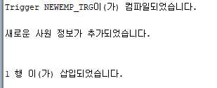 DBMS_OUTPUT.PUT_LINE('새로운 사원 정보가 추가되었습니다.');
