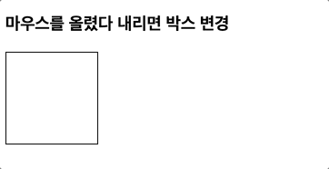 🥸 실습: 마우스를 올리면 박스가 늘어나며 배경색이 바뀌고 마우스를 내리면 박스가 사라짐