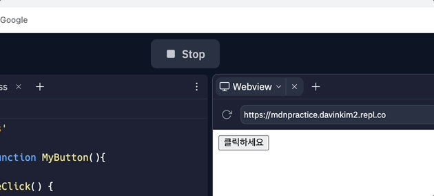 이제 버튼 중 하나를 클릭하면, MyApp의 count가 변경되어 두 개의 MyButton count가 변경될 것이다