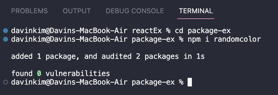 package를 관리할 폴더에 들어가서 teminal에 npm init을 작성한다.