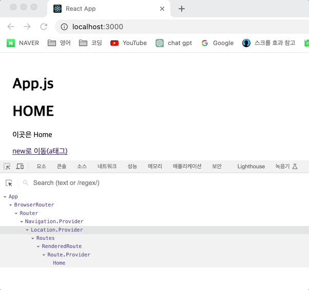 <Route path="/new" element={<New />} /> {/* path가 /new라면 New 컴포넌트를 렌더하라는 명령*/}