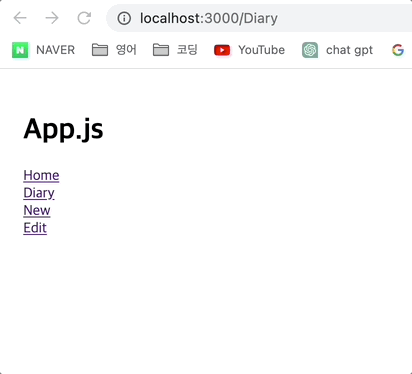 로 정의를 해두었기 때문에 URL이 id값이 없는 그냥 /Diary뿐이라면 해당 페이지가 로드되지 않는다. 이럴 땐