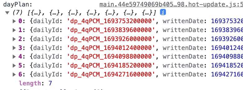 처음에는 위와 같이 dayPlan 배열을 map으로 돌려서 7개의 item(日칸 하나하나)를 만들려고 하였는데,