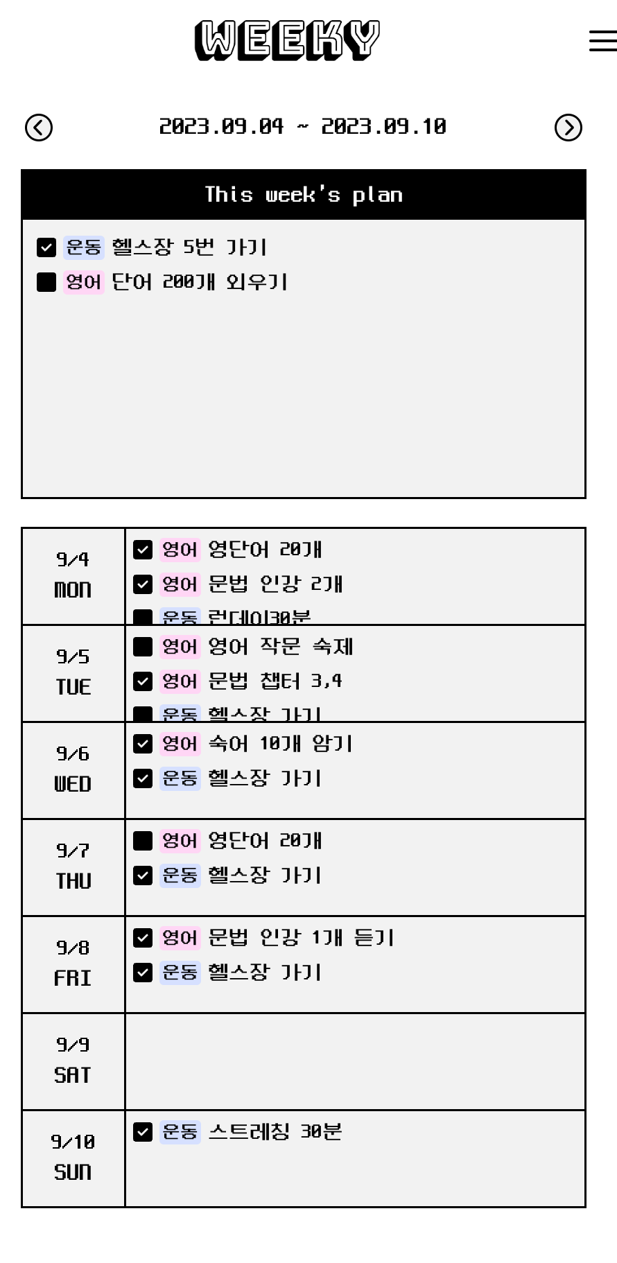 📆 위클리 플래너 - 첫화면, 로그인 (0) | 2023.09.05 |